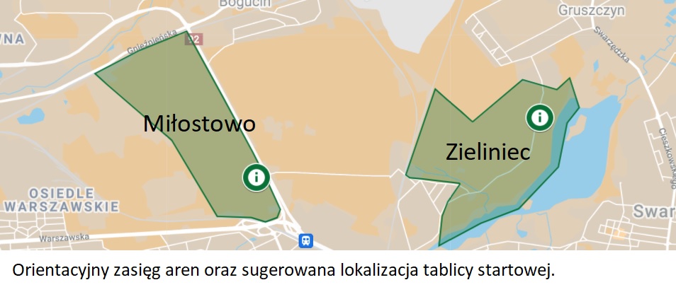 2. areny do biegów na orientację: "Miłostowo", "Zieliniec"