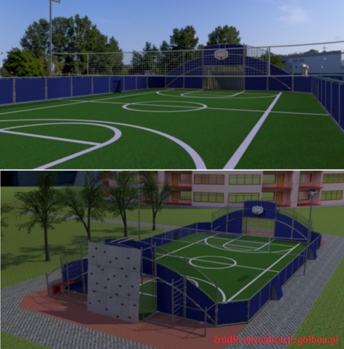 • 295 tys. zł brutto boiska GolBox S FIT&FUN o wym. 12 x 20,0m wraz z kosztami podbudowy, drenażu, krawężników, fundamentowania pod konstrukcję boiska i nawierzchni z trawy syntetycznej. W podanej cenie zawarte są wszystkie koszty, czyli także: koszty transportu, montażu oraz koszt projektu i nadzoru budowlanego wraz z koordynacją realizacji inwestycji.