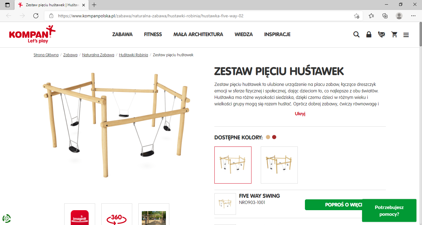 Informacja o rodzajach huśtawek znajduje się w załączniku.